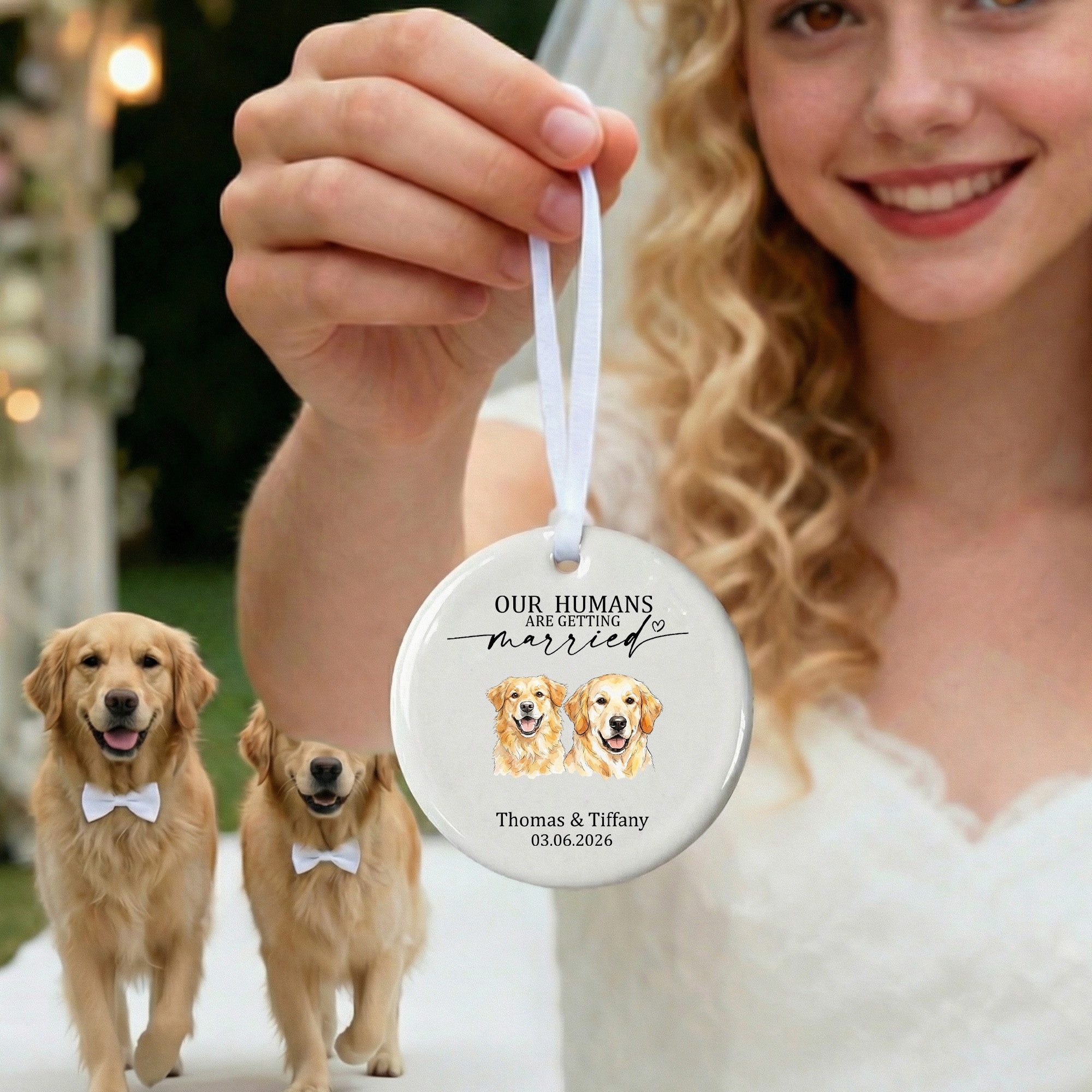 Personalized Pet & Couple Detail – Each ornament includes a unique pet illustration—and is customized with the couple’s names and wedding date. This meaningful touch makes it a lasting keepsake for pet-loving partners.